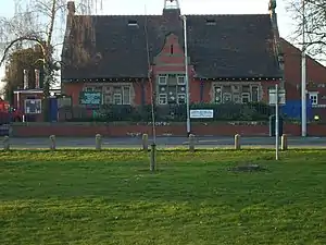 The school was originally opened in 1703 and was situated somewhere opposite the parish church. By the mid-19th century, Trysull School was the building immediately adjacent to the School House. In 1895 a severe gale blew down the main chimney, destroying part of the roof and causing other considerable damage. Using a bequest of nearly £3,000 from Eliza Baker of Bromsgrove (formerly of Seisdon), work was started on the present school building which opened in 1896, a short distance from its predecessor.[18] The building design, commissioned by the Mander family, was carried out by noted Arts and Crafts style architect Frank Worthington Simon. Drawings are held in the RIBA Archive at the Victoria & Albert Museum.[19]