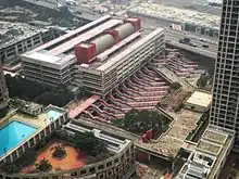 Construction of the Complex started in 1983.[1] The multi-storey car park opened in April 1986.[2] Starting from 1 May 1997, the multi-storey car park was managed by Wilson Parking, taking over from Metropark, a Wharf subsidiary.[3][4] A driving school operated on the 9th and 10th floors of the building since 1999.[5][6] As of 2009, the Complex was planned for demolition or partial demolition under the MTR Corporation's TW5 property development project.[7] A case in 2010 about environment nuisances caused by street sleepers dwelling in the Complex, highlighted the fact that it had been unclear since 1986, which Government Department held management responsibility for the Complex.[8] As of February 2012, most of the bus routes using the Complex had relocated their termini elsewhere, and most of the building had fallen into disuse.