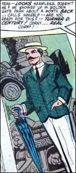Century had no inherent superpowers. He owned and used an umbrella that concealed a flamethrower, and rode a tandem bicycle (the rear seat was taken by a dummy wearing fashionable women's clothes of the pre-World War I era) that could fly by unknown means.
