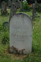 The poet and composer Ivor Gurney is buried in the churchyard. Next to Gurney's grave is that of Michael Howells, son of the composer Herbert Howells, who died in 1935 of polio aged nine.[5] Howells later wrote a hymn tune entitled Twigworth for the hymn "God is love, let heaven adore him", one of two hymn tunes he composed in memory of his son (the other being Michael — "All my hope on God is founded").[6]