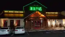 Twin Peaks is an American chain of sports bars and restaurants based in Lewisville, Texas,[2] which has been described as an "ultimate sports lodge"[3] and breastaurant along with similar chains.[4] The chain is known for having its waitresses, primarily young women and typically referred to as "Twin Peaks Girls", dress in revealing uniforms that consist of cleavage- and midriff-revealing red plaid tops, as well as khaki shorts or denim short shorts.[5] At other times, waitresses wear revealing seasonal or themed outfits.[6] Restaurants are decorated in the theme of a wilderness lodge and serve a mix of American, Southwest and Southern cuisines as well as alcohol.[7] The chain's slogan is "Eats. Drinks. Scenic Views."[8]