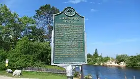 A Michigan Historic Marker commemorates the Two-Hearted Life-Saving Station built in 1876 at the river mouth. It was a simple two-story building with a small lookout tower manned by six to eight volunteer surfmen who conducted rescues of the Satellite (1879) and the Phineas S. Marsh (1896). The station, along with the rest of the United States Life-Saving Service, was integrated into the U.S. Coast Guard in 1915, decommissioned in the 1930s, and its structures were razed in 1944.[3][4]