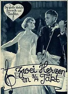 Two Hearts in Waltz Time (Original title: Zwei Herzen im 3/4 Takt or Zwei Herzen im Dreivierteltakt, literally Two Hearts in 3/4 Time) is a 1930 German film directed by Géza von Bolváry and starring Irene Eisinger, Walter Janssen, Oskar Karlweis, Willi Forst, Gretl Theimer, and S.Z. Sakall. It is an operetta written directly for the screen, with music by Robert Stolz.