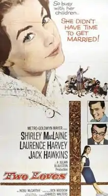 Two Loves is a 1961 American drama film directed by Charles Walters and starring Shirley MacLaine, Laurence Harvey, Jack Hawkins, and Nobu McCarthy. It is based on the book Spinster by Sylvia Ashton-Warner. It was entered into the 11th Berlin International Film Festival.[2]