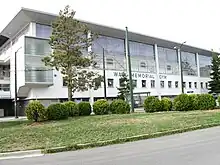 War Memorial Gymnasium is a gymnasium on the University of British Columbia campus. It was officially dedicated on October 26, 1951, to the family members of service personnel who died in the two world wars.[1] The Memorial walls have since been updated to reflect UBC's involvement with Canada's military. It is frequently referred to as 'The' 'Historic' War Memorial Gymnasium and hosts the annual UBC Remembrance Day Ceremony.[2]