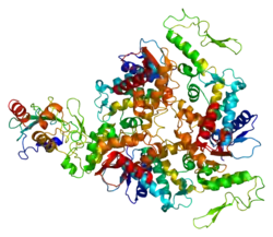 - ↑ Huang L, Kinnucan E, Wang G, Beaudenon S, Howley PM, Huibregtse JM, Pavletich NP (November 1999). "Structure of an E6AP-UbcH7 complex: insights into ubiquitination by the E2-E3 enzyme cascade". Science. 286 (5443): 1321–6. doi:10.1126/science.286.5443.1321. PMID 10558980.