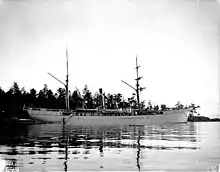 The ship reached San Francisco on 11 May 1888,[4] having completed a 15,957-mile voyage. For much of the remainder of the year, she operated between San Francisco and Alaska, exploring the waters to the south of the Alaska Peninsula and, later, in examining the area off the coasts of Washington and Oregon.