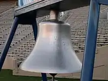 The ship's bell, inscribed "USS Illinois 1946", is now at Memorial Stadium at the University of Illinois at Urbana–Champaign. The bell is on loan from the Naval History and Heritage Command (Accession #70-399-A), Washington Navy Yard, Washington DC, to the Naval Reserve Officers Training Corps (NROTC) at the university. The bell is traditionally rung by NROTC members when the university football team scores a touchdown or goal.[17]