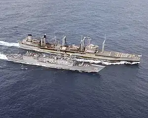 ![]() Pawcatuck refueling USS Doyle (FFG-39) in 1990 | |