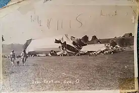 On 17 September the Milwaukee Sentinel reported that 20 Department of Justice operatives had been summoned to the site and that they, along with an unspecified number of federal and state prohibition agents, had visited private homes to collect four truck loads of wreckage along with personal grips of several crew members and a cap believed to have belonged to Commander Lansdowne.[18] Lansdowne's Annapolis class ring had also been thought to have been taken from his hand by looters, but it was found by chance in June 1937 near crash site #1.[19] No one was charged with any crime.