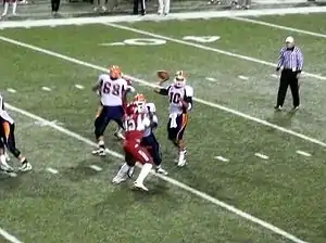 In 2010, the Miners finished 6–7.[590] In the season's first game, the Miners defeated I-AA foe Arkansas–Pine Bluff by a score of 31–10.[591] After losing to Houston,[592] the Miners defeated New Mexico State,[593] Memphis,[594] New Mexico[595] and Rice.[596] The team lost their next three to UAB,[597] Tulane[598] and Marshall.[599] After defeating SMU by a score of 28–14,[600] the Miners lost their last three to No. 14 Arkansas,[601] Tulsa[602] and in the 2010 New Mexico Bowl to BYU by a score of 52–24.[603] With the New Mexico Bowl appearance, Price became the second Miner head coach to take UTEP to three bowl games, after Mike Brumbelow, who led the Miners to the Sun Bowl in 1954, 1955 and 1957.[604] Trevor Vittatoe, a senior in 2010, broke Jordan Palmer's school records for career passing yards (12,439) and touchdown passes (97) during his time at UTEP.[605] Vittatoe also set school records in total offense (12,291 yards) and touchdowns responsible for (98).[605] Running back Donald Buckram also graduated after the 2010 season and left as the UTEP leader for rushing yards in a single season.[606]