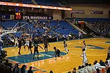 The UT Arlington Mavericks men's basketball team is an NCAA Division I college basketball team competing in the Western Athletic Conference. Home games are played at College Park Center, located on the University of Texas at Arlington's campus in Arlington. The team appeared in the 2008 NCAA tournament, losing against the #1 seed Memphis in the first round, although Memphis was later forced to vacate the win due to infractions committed by the program.