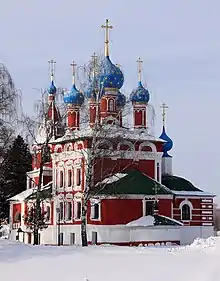 Uglich (Russian: У́глич, IPA: [ˈuɡlʲɪtɕ]) is a historic town in Yaroslavl Oblast, Russia, located on the Volga River. Population: 34,507 (2010 Census);[4] 38,260 (2002 Census);[9] 39,975 (1989 Census).[10]