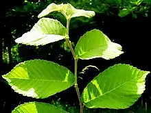 Ulmus gaussenii W. C. Cheng, the Anhui, or hairy, elm, is a medium size deciduous tree whose natural range is restricted to the valleys of the Langya limestone mountains of Chu Xian[2] in Anhui Province, eastern China.[3] The tree was most commonly found on the flood plains, indicating a tolerance of periodic inundation. However, U. gaussenii is now possibly the rarest and most endangered elm species, with only approximately 30 trees known to survive in the wild in 2009.[4]