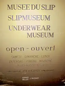 - "Bruxelles: le Musée du Slip va fermer fin de l'année". La Capitale. 2015-12-20. Archived from the original on 2016-04-03.