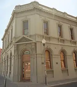 The bank built new premises further along High Street in 1930 and placed the existing building up for auction. It was advertised as having a 119-foot (36 m) frontage along High Street and a 64.5-foot (20 m) frontage along Cliff Street. The ground floor of the brick building had a large banking chamber, a manager's office, strongroom, entrance hall, dining room and kitchen. The first floor contained a drawing room, seven bedrooms, bathrooms and linen closet. There were balconies at both the front and rear of the building.[1]