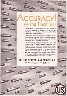 The United States Cartridge Company was an early manufacturer of cartridge ammunition for small arms. The company was founded in 1869 by American Civil War general Benjamin Butler. Company startup was during the most rapid evolution of cartridge design to date.[1] Lowell, Massachusetts emerged as one of the most successful cartridge producers in the United States while Butler served as a congressman from Massachusetts from 1867 to 1879 and as governor from 1883 to 1884. After supplying 65 percent of American small arms ammunition production for World War I,[2] the company was acquired by the owner of Winchester Repeating Arms; and the Lowell factory closed as manufacturing shifted to New Haven, Connecticut.[3]