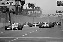 The inaugural event in 1989 was held at short notice and it could only be held in June (Detroit's former date), one of the hottest months in Phoenix, a city with summer temperatures regularly going past 110 °F (43 °C). Temperatures neared 100 °F (38 °C) on race weekend. Out of 40,000 capacity, 34,441 tickets were sold. Ecclestone expected the event to be sold out but was told that the local populace avoided outdoor events during summer.[41] The race was moved to March, as the opening round of the season, for the next two years. The McLaren team dominated all three years, with Alain Prost winning in 1989 and Ayrton Senna in 1990 and 1991. The 1989 race saw Prost win his only Grand Prix in the United States by taking advantage of Senna's engine electronics problems. The 1990 race saw emerging French star Jean Alesi harrying Senna for a number of laps; the Tyrrell driver went on to finish second behind Senna. The circuit had to be changed for the 1991 race due to the construction of a new Phoenix Suns basketball arena, and the revised circuit was generally seen to be an improvement. Senna won the race from pole position. On October 7, 1991, members of International Auto Sport Federation (FISA) met to discuss the agenda for the 1992 Formula One season, where they voted to cancel the contract with city of Phoenix. That same year, Phoenix assistant city manager David Garcia said the city had already invested $1.3 million dollars preparing for the 1992 race and was in negotiations with Ecclestone on contract cancellation.[42] Ecclestone was asked if poor attendance was to blame for the Phoenix race pull out; he said that attendance was never a problem but the inability to place more than 20,000 seats in a way where fans could have a better view was.[43] There were rumors of a race on the streets of the Manhattan borough of New York City for 1992 and a race on the streets of the Las Vegas Strip for 1995, but these never materialized and a Formula 1 event would not be held in United States for the next 9 years.