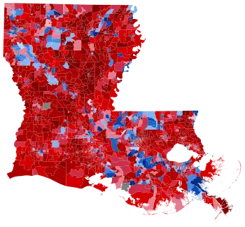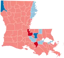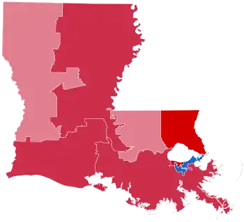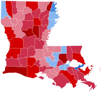 In this election, Louisiana voted 25.9% to the right of the nation at-large, or a 13.85 percent bigger differential than in 2004.[1]