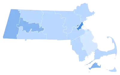 Massachusetts was won by Democratic Governor Bill Clinton of Arkansas with 47.54% of the popular vote over incumbent Republican President George H. W. Bush of Texas with 29.03%. Independent businessman Ross Perot of Texas finished in third, with 22.80% of the popular vote.[1] Clinton thus defeated Bush in the state with a margin of 18.51%.[2]