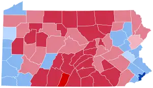 Pennsylvania was won by Vice President Al Gore by a 4.17% margin of victory. However, voter enthusiasm for both candidates was generally low throughout the campaign. Gore failed to capture Clinton's appeal in strongly Democratic regions such as Pittsburgh and Scranton, and thus carried these areas by a smaller number than his predecessor. However, opposition to George W. Bush was particularly strong in the suburban counties of Philadelphia; although these areas at the time were typically Republican leaning, they featured a strong culturally liberal bent, and thus Bush was unable to appeal to voters. Bush support was particularly strong in rural, central Pennsylvania, where the Texas Governor appealed to Evangelical voters and where Gore's connection to gun control policies was strongly rejected. Marginal wins in both of the state's metropolitan areas helped the Vice President to capture the state.[1] This was the first election since 1968 that the candidate who won Pennsylvania did not win the general election, and only the fourth time that has happened since 1916. As of the 2020 presidential election, this is the last election in which Greene County, Mercer County, and Lawrence County voted for the Democratic candidate.