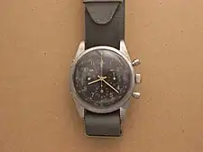 Universal Genève's 'A. Cairelli Rattrapante', an aviator's chronograph, consists of a 24-hour dial with a 16-minute register. Manufactured in Rome, the wristwatch was produced only sporadically between 1939 and 1945 and was originally meant for the Royal Italian Air Force (Regia Aeronautica Italiana).[34] At private dealers and auction houses such as Sotheby's[35][36] and Christie's,[37] the Universal Genève Cairellis have closed between an estimated $90,000 and $130,000.[38]