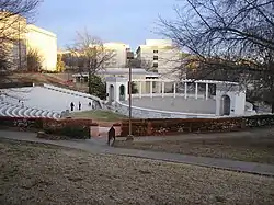 The landscape around the Chi Omega Greek Theatre includes shade trees, hedges, and scenic lawns. From the lawn, downtown Fayetteville is visible. The Theatre and Landscape augment each other, together making a historic landscape.[21]