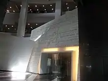 The Central Library is conceived as an earth architecture which integrates building and landscape. A series of stone-like towers project from the mound-like landform. The towers were seen as abstracted stone tablets (prasasti) rising from the earth mound. These stone towers clad with granite stone claddings have varying heights. The part of the library which faces the lake is "eroded", forming a sectional opening to the entire masses in the form of narrow-glazed bands, at the same time allowing light to enter into the interior.[2]