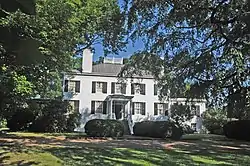Upper Shirley is a historic plantation house located near Charles City, Charles City County, Virginia. In 1866, the owner of Shirley Plantation, Hill Carter, decided to retire and divide his Shirley Plantation estate, with the bulk of the estate (the current Shirley Plantation) bequeathed to his son, Robert, and the 'Upper Shirley' portion bequeathed to William Fitzhugh Carter.[3] [4] The original section of the house was built in 1868–1870, which has consequently been enlarged to its present size in 1890. It is a two-story, nearly square, stucco covered brick dwelling with an overhanging hipped roof. It measures approximately 42 feet by 47 feet. The front facade features a portico with stylized Doric order columns. On the west elevation is a doorway originally on the Warren House in Harrisonburg, Virginia; it is protected by a two-level porch which stretches across the entire facade. The house was built by Hill Carter for his son William Fitzhugh Carter of materials salvaged from a large 18th-century building that was demolished at Shirley Plantation.[5]
