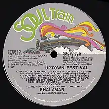 "Uptown Festival" is the debut single by the band Shalamar, released on Soul Train Records in 1977. The song is a medley of ten Motown classics sung over a 1970s disco beat. The radio edit, "Uptown Festival (Part 1)", became a hit peaking at No. 25 on the Billboard Hot 100, No. 10 on the R&B chart and No. 2 on the Dance chart. It also charted internationally. After the success of the single, Dick Griffey, the booking agent for Soul Train, formed a vocal group, resulting in the first incarnation of Shalamar with Jody Watley, Jeffrey Daniels and Gary Mumford.[1]