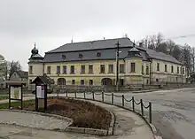 The castle was originally a fortress, rebuilt into a Baroque aristocratic residence in 1723–1729. In 1904–1907, it was rebuilt into its present Neo-Baroque form. Today it houses the municipal office.[2][6]