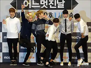Prior to their debut, the original six group members were contestants on the Mnet survival reality show MyDOL.[1] The members made several guest appearances in the music videos of fellow artists under Jellyfish Entertainment. N, Leo, Hongbin, and Ravi featured in the music videos for Brian Joo's song "Let This Die";[fn 1][3][4] N, Leo, and Ravi featured in Seo In-guk's "Shake It Up";[5] Hongbin featured in Seo's "Tease Me".[6]