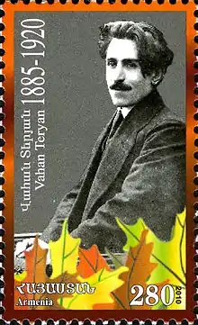 Vahan Terian (Armenian: Վահան Տերյան; February 9, 1885 – January 7, 1920) was an Armenian poet, lyrist and public activist. He is known for his sorrowful, romantic poems, the most famous of which are still read and sung in their musical versions.