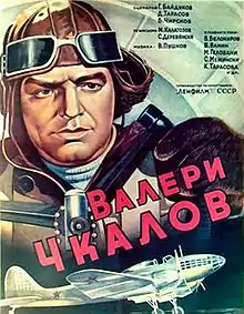 Valery Chkalov (Russian: Валерий Чкалов, UK title - The Red Flyer, United States title - Wings of Victory) is a Soviet biopic about the life of Valery Chkalov, directed by Mikhail Kalatozov.[1] The screenplay was written by Georgy Baidukov, Boris Chirskov and Dmitri Tarasov. The film was produced by Lenfilm and distributed in the United States by Artkino Pictures (1941), and later by Top1Video (1999).