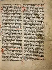 A page from Codex Frisianus, citing stanzas by Valgarðr á Velli on Harald Hardrada's campaign in Denmark