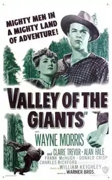 Valley of the Giants is a 1938 American Technicolor adventure film directed by William Keighley, written by Seton I. Miller and Michael Fessier, and starring Wayne Morris, Claire Trevor, Frank McHugh, Alan Hale Sr., Donald Crisp, and Charles Bickford. It is based on the novel The Valley of the Giants by Peter B. Kyne.[1] The film was released by Warner Bros. on September 17, 1938.[2][3]