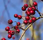 | Common hawthorn | Font d'en Sagrera torrent. | Europe, North Africa and Asia | Small deciduous tree with small leaves with three to seven lobes and white flowers. The fruits are bright red. | ![]() |