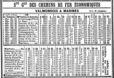 Valmondois is located on the original Paris - Lille line, opened on 20 June 1846 by Compagnie des chemins de fer du Nord (Nord Railway Company). This line passed along the Montmorency Valley (Ermont-Eaubonne), and headed towards the Northeast at Saint-Ouen-l'Aumône, continuing through the Oise valley. In 1859, a more direct line along Chantilly was opened. The Ermont-Eaubonne - Valmondois branch line via Saint-Leu-la-Forêt was opened in 1876. Between 1886 and 1949, a branch line existed from Valmondois to Marines