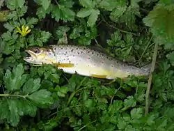Brown trout (trutto fario), one of the species of fish found in the Valmont river