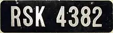 "R" prefixed serial number denotes this plate issued in Salisbury, Rhodesia, between 1965 and 1979