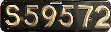 "S" prefixed serial number denotes this plate issued in Salisbury, Southern Rhodesia, between 1931 and 1958