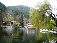 Among the landmarks of Velingrad is the Kleptuza karst spring with a flow of 600 to 1200 L/s. The park with its two lakes is one of the symbols of the town. It is located in the Chepino district, which is one of the three thermal zones in Velingrad. A large part of the spring water is used for drinking purposes; the other part feeds two lakes, which then flow into the Chepinskaya River, and from there into the Maritsa and the White Sea. Pine forests stretch south from the karst spring and have been turned into a natural park. The park was built with own funds by the former rural municipality of Chepino - Banya, and the first lake was established in 1933.[27]