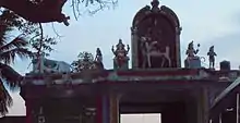 The presiding deity is Somaskanda. The goddess is Kaviaganni. There are shrines to Ganesha, Durga, Murugan and his consorts Valli and Deivayanai.