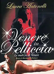 The film was eventually released in 1973 under the title Venere nuda, but even this cut version was confiscated after a few days for contempt of decency.[1][2] In 1975, the film was finally released in Italian cinemas under the title Le malizie di Venere, in a heavily censored version which was altered by a new editing and by the introduction of new scenes filmed by Paolo Heusch, which turned the film plot into a giallo.[1] The new title was a specific reference to lead actress Laura Antonelli's box-office success in Malizia (1973).[1]