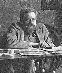 He was born to Rikard Åkerman, a ship's foreman, and his wife Hilda née Hellberg; growing up on their family farm.[1] His childhood was difficult, however, as he had congenital kyphosis, a condition which would require the lifelong use of crutches.[2] His initial studies were with the sculptor, Wilhelm Billqvist, at the Slöjdföreningens skola in Göteborg, from 1883 to 1887, he was a student of Carl August Söderman at the Royal Swedish Academy of Fine Arts in Stockholm. His tiny apartment became a popular gathering place for his fellow students, who enjoyed his singing.
