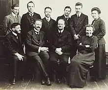 (from left to right): Paul Ehrenfest, Abram Ioffe , Dmitry Rozhdestvensky , Tatyana Afanasyeva. Standing (from left to right): Vladimir Chulanovsky, G. Weichardt, L. Isakov, G. Perlitz, Victor Robertovich Bursian, J. Schmidt