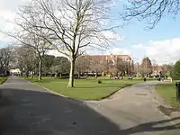 Victoria Park is a public park located just to the north of Portsmouth Guildhall, adjacent to Portsmouth and Southsea railway station and close to the city centre in Portsmouth, Hampshire. It was officially opened on 25 May 1878 and was the first public park to be opened in Portsmouth. It was designed by Alexander McKenzie.[1] The land had previously been the site of part of Portsmouth's defensive ramparts.[1] It has a total area of around 15 acres (61,000 m2) and is planted with trees, shrubs and flowers. The centre of the park features an enclosed area which houses animals such as birds, rabbits and guinea pigs.[2][3][4][5][6] The park has a brick and rubble lodge.[1] A second lodge didn't survive to the present day.[1]