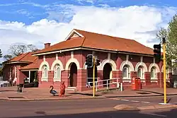 Victoria Park Post Office was built in 1913 as a face brickwork building with an attached residence to provide a three-bedroom quarter at the rear. Verandah entries were located on the northwest (Duncan Street) and northeast sides (rear yard) while the main corner entry porch had arched openings faced with brick piers and walling. It is possible that the postal hall ceiling had a dome over the main counter lit by the lantern. Internally, the accommodation included the postal hall, cashier's enclosure, telegraph room, postmaster's office, hall and mailroom.[1]