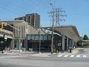 Victoria Park is a station on Line 2 Bloor–Danforth of the Toronto subway system. It is located at 777 Victoria Park Avenue, one block north of Danforth Avenue in Scarborough. The station can be accessed by pedestrians directly from Victoria Park Avenue; by way of an unmanned entrance from Albion Avenue; through an automated entrance from Teesdale Place; and via a walkway that leads to the nearby Crescent Town area. A City of Toronto bicycle station is located adjacent to the main Victoria Park Avenue entrance, providing a paid secure indoor bicycle parking area.[3]