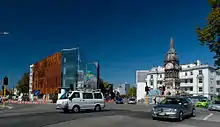 Victoria Square is one of four squares located in the Christchurch Central City.[1] It is located just north-west from its centre, Cathedral Square. The square was initially bisected by Whately Road (named after the Archbishop of Dublin, Richard Whately, who was a member of the Canterbury Association[2]), later renamed Victoria Street, and this formed a major route to the north towards Papanui and beyond.[3] Victoria Street was stopped in 1988 at Kilmore and Durham Streets under much public protest when the Parkroyal Hotel, the later Crowne Plaza, was built.[3][4] When the Crowne Plaza was demolished in 2011/12 following the earthquakes, some were calling for the road to be restored; this included central city business leader Paul Lonsdale.[5] This caused quite a storm of opposition, and soon after, the idea of restoring the road was dropped.
